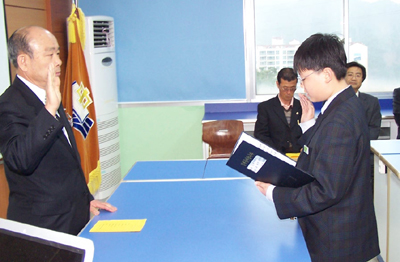 °ÅÁ¦ÁßÇб³(±³Àå Á¶±ÔÅÂ) ù ¿µÀçÇÐ±Þ ÀÔÇнÄÀÌ Áö³ 29ÀÏ ÀÌ Çб³ °úÇÐ1½Ç¿¡¼ ÀÔÇлý, Çкθð, ±³Á÷¿ø ¹× ³»ºóÀÌ Âü¼®ÇÑ °¡¿îµ¥ ¿·È´Ù.