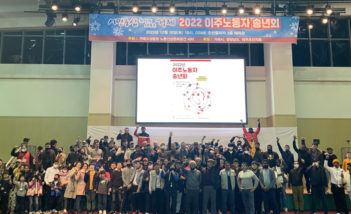 2022 °ÅÁ¦½Ã ¿Ü±¹ÀÎ ³ëµ¿ÀÚ ¼Û³âȸ°¡ Áö³ 10ÀÏ Àú³á ´ë¿ìÁ¶¼±Çؾç(ÁÖ) ¿À¼ÇÇöóÀÚ Ã¼À°°ü¿¡¼ ¿·È´Ù. ¿Ü±¹ÀÎ ³ëµ¿ÀÚ ¼Û³âȸ´Â ÀÌÁֳ뵿ÀÚÀÇ ¼ÒÅë°ú ÈÇÕÀ» µµ¸ðÇϰí Áö¿ª »çȸ Á¤ÂøÀ» µ½±â À§ÇÑ Çà»ç·Î °ÅÁ¦°í¼ºÅ뿵 ³ëµ¿°Ç°¹®È°ø°£ »õÅÍ(´ëÇ¥ ³ë½Âº¹)¿¡¼ ÁÖ°ü¡¦
