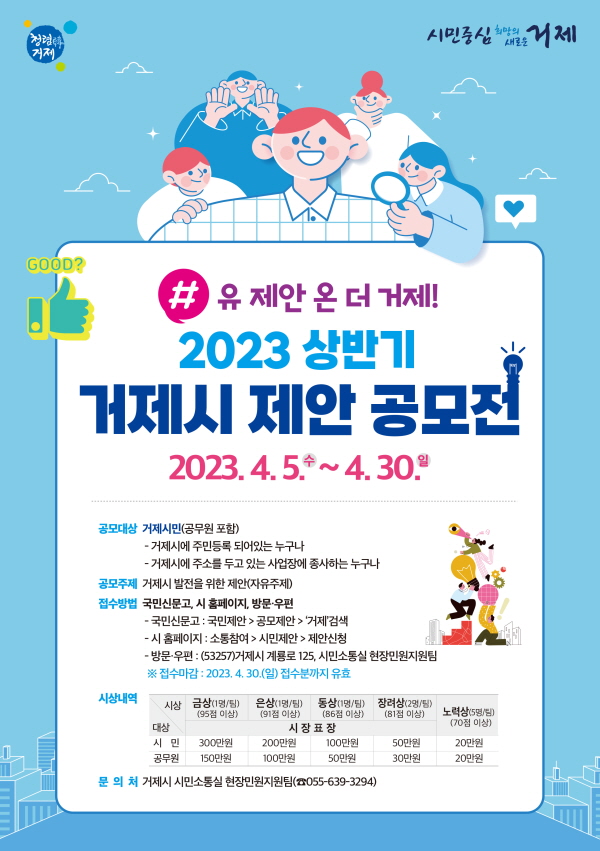 °ÅÁ¦½Ã´Â ¿À´Â 5ÀϺÎÅÍ 30ÀϱîÁö °ÅÁ¦½Ã ¹ßÀüÀ» À§ÇÑ ÀÚÀ¯ÁÖÁ¦·Î #À¯ Á¦¾È ¿Â ´õ °ÅÁ¦! 2023³â »ó¹Ý±â Á¦¾È °ø¸ðÀüÀ» °³ÃÖÇÑ´Ù. À̹ø °ø¸ðÀüÀº ½Ã¹ÎÁß½ÉÀÇ °ÅÁ¦¸¦ À§ÇØ ½Ã¹Î ¹× ½Ã ¼Ò¼Ó °ø¹«¿øÀÇ Ã¢ÀÇÀûÀ̰í Çõ½ÅÀûÀÎ Á¤Ã¥ Á¦¾ÈÀ» ¹ß±¼Çϰí, ¹ß±¼µÈ Á¦¾ÈÀ» ½ÇÁ¦ Á¤¡¦