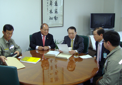 Áö³´Þ 25ÀÏ ¿ÀÈÄ 1½Ã 30ºÐ²² ±¹È¸ ±è±âÃáÀÇ¿ø½Ç¿¡¼ »ê¾÷ÀºÇà ´ë¿ìÁ¶¼±¸Å°¢ ´ã´ç ±è¿µ±â ÀÌ»ç¿Í °ÅÁ¦½ÃÀÇȸ ¿Á±âÀçÀÇÀå, ´ë¿ìÁ¶¼±³ëÁ¶ ±èÅ·æºÎÀ§¿øÀå, ÇÏÁø°æ ¹ý±Ô½ÇÀå µîÀÌ ÀÚ¸®¸¦ ÇÔ²²ÇÏ°í ´ë¿ìÁ¶¼± ¸Å°¢ °ü·Ã °£´ãȸ¸¦ °¡Á³´Ù. ±è±âÃáÀÇ¿øÀÇ ÁÖ¼±À¸·Î ¸¶·ÃµÈ ÀÌ¡¦