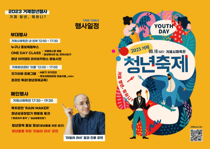 °ÅÁ¦½Ã´Â ¿À´Â 9¿ù 16ÀÏ Åä¿äÀÏ Ã»³âÀÇ ³¯À» ±â³äÇØ 2023 °ÅÁ¦Ã»³âÃàÁ¦(ºÎÁ¦: °ÅÁ¦ û³â, ¹¹ÇÏ´Ï?)¸¦ °³ÃÖÇÑ´Ù. ¿ÃÇØ·Î ¼¼¹øÂ° °³ÃֵǴ û³âÃàÁ¦´Â ´õ¿í ´Ù¾çÇÏ°í ¾ËÂù ÇÁ·Î±×·¥À¸·Î ±¸¼ºÇß´Ù. ¸ÕÀú Çà»ç´çÀÏ 12½ÃºÎÅÍ 17½Ã 30ºÐ±îÁö °ÅÁ¦½ÃüÀ°°ü ¿ÜºÎ¿¡¼¡¦