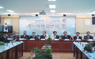 ³²ºÎ¸éÀº Áö³ 14ÀÏ ¸é»ç¹«¼Ò¿¡¼ °æ±âµµ ¾çÁֽà ±¤Àû¸é°ú ÀڸŰῬÀ» ¸Î¾ú´Ù. °á¿¬½Ä¿¡´Â ¾çÃøÀλç 70¿©¸íÀÌ Âü¼®ÇßÀ¸¸ç µÎÁö¿ªÀº »óÈ£ ±³·ùÈ®´ë¸¦ À§ÇÑ ÃßÁø¹æÇâÀ» Á¦½ÃÇÏ´Â µî ½ÇÁúÀûÀ̰í Çö½ÇÀûÀÎ °á¿¬ÀÌ ÃßÁøµÉ ¼ö ÀÖµµ·Ï Çù·ÂÀ» ´ÙÁüÇß´Ù. ±¤Àû¸é °ü°èÀÚµéÀº¡¦