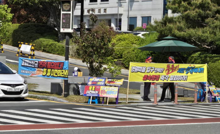 12ÀÏ °ÅÁ¦½Ã µ¿ºÎ¸é ¿µ¿ù¸¶À» ÁֹεéÀÌ °ÅÁ¦½Ãû ÀÔ±¸¿¡¼ ÅëÇÕ Çϼö󸮽ü³ ¼³Ä¡¸¦ ¹Ý´ëÇÏ´Â Áýȸ¸¦ À̾°í ÀÖ´Ù. ÁֹεéÀº ¡®¸¶À» ÀÔ±¸ ÇѺ¹ÆÇ ¶ËÅëÀÌ ½Ã¹ÎÇູÀ̳Ä. Á¹¼ÓÇàÁ¤ Áï°¢ öȸÇ϶󡯴 µîÀÇ Æîħ¸· µîÀ» ³»°É°í ÀÖ´Ù.