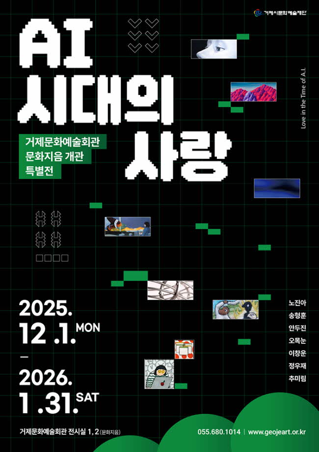 ¡°¾î´À ³¯, ÀΰøÁö´É ·Îº¿ÀÌ ³ª¿¡°Ô ¸»À» °É¾ú´Ù¡±. 7¸íÀÇ ¿¹¼ú°¡µéÀÌ Ç¥ÇöÇÑ AI½Ã´ë ¿ì¸®ÀÇ ÇöÁÖ¼Ò´Â? °ÅÁ¦½Ã¹®È¿¹¼úÀç´ÜÀº 1ÀÏ(¿ù)ºÎÅÍ ³»³â 1¿ù 31ÀÏ(Åä)±îÁö °ÅÁ¦¹®È¿¹¼úȸ°ü Àü½Ã½Ç 1¡¤2 (¹®ÈÁöÀ½)¿¡¼ ¹®ÈÁöÀ½ °³°ü Ưº°Àü¡¶AI½Ã´ëÀÇ »ç¶û¡·À» °³ÃÖÇÑ¡¦
