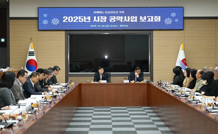 °ÅÁ¦½Ã(½ÃÀå º¯±¤¿ë)´Â 26ÀÏ ½Ãû ÁßȸÀǽǿ¡¼ 2025³â ½ÃÀå °ø¾à»ç¾÷ º¸°íȸ¸¦ °³ÃÖÇÏ°í ¹Î¼±8±â Á¦11´ë °ø¾à»ç¾÷ Àü¹Ý¿¡ ´ëÇÑ ÃßÁø ÇöȲÀ» Á¡°ËÇß´Ù. À̹ø º¸°íȸ´Â º¯±¤¿ë ½ÃÀå ÁÖÀç·Î ¹Î±â½Ä ºÎ½ÃÀåÀ» ºñ·ÔÇØ ±¹・¼ÒÀå, °ø¾à ¼Ò°ü ºÎ¼Àå ¹× °ø¾àÀÌÇàÆò°¡¡¦