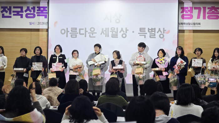 Áö³ 4ÀÏ °ÅÁ¦YWCA¼ºÆø·Â»ó´ã¼Ò ¼Õ¿µ¼ø ¼ÒÀåÀÌ Àü±¹¼ºÆø·Â»ó´ã¼ÒÇùÀÇȸ°¡ ¼ö¿©ÇÏ´Â ¡®¾Æ¸§´Ù¿î ¼¼¿ù»ó¡¯À» ¼ö»óÇÏ´Â ¿µ¿¹¸¦ ¾È¾Ò´Ù. ¡®¾Æ¸§´Ù¿î ¼¼¿ù»ó¡¯Àº ¿©¼ºÆø·Â ÇöÀå¿¡¼ 10³â ÀÌ»ó Çå½ÅÇϸç ÇÇÇØÀÚÀÇ °çÀ» Áö۰í, Á¦µµÀû¡¤»çȸÀû º¯È¸¦ À̲ø¾î³½ Ȱµ¿°¡µéÀÇ¡¦