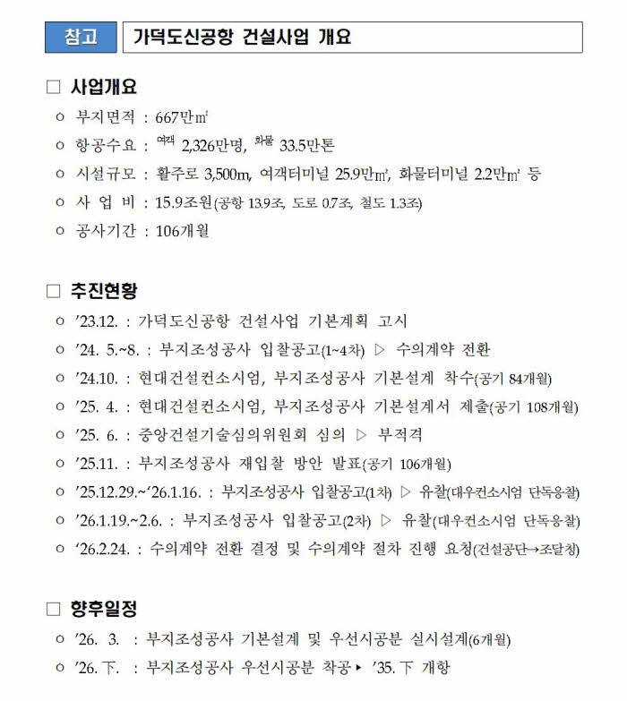 ºÎ»ê½Ã°¡ °¡´öµµ½Å°øÇ× ºÎÁöÁ¶¼º°ø»ç ¼öÀǰè¾à ´ë»óÀÚ·Î ¼±Á¤µÈ ´ë¿ì°Ç¼³ÄÁ¼Ò½Ã¾öÀÌ ¿À´Â 9ÀÏ ±âº»¼³°è¿¡ Âø¼öÇÑ´Ù°í 5ÀÏ ¹àÇû´Ù. Áö³ÇØ 11¿ù ±¹Åä±³ÅëºÎ´Â °¡´öµµ½Å°øÇ× ºÎÁöÁ¶¼º°ø»ç ÀÔÂû ¹æÄ§À» ¹ßÇ¥ÇÏ°í µÎ Â÷·Ê ÀÔÂû °ø°í¸¦ ÁøÇàÇßÀ¸³ª ¸ðµÎ À¯ÂûµÅ ´ë¿ì°Ç¼³ÄÁ¡¦