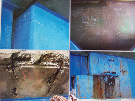 ¶ÇÇÑ ¾Æ½ºÆÈÆ® ³ëÈÄ¿Í °ÆÇºÎ½Ä, ³°£ÁöÁÖÀÇ Ãæµ¹¿¡ ÀÇÇÑ ¾ÈÀü¼º ¹ÌÈ®º¸, ÀϺΠ¿ì¹°Åë µÑ·¹ ¹Ú¸® ¹× º¸°Àç ÆÄ¼Õ µîÀ» ÁöÀûÇß´Ù. ƯÈ÷ ±³·®¿¡ »ç¿ëµÈ °Àç ¿ëÁ¢ºÎ¿¡ ´ëÇÑ ÃÊÀ½ÆÄ Ž»ó °Ë»ç¿¡¼ 250°³¼Ò °¡¿îµ¥ 123°³¼Ò°¡ ¹æ»ç¼± Åõ°ú°Ë»ç¿¡¼´Â 40°³¼Ò Áß 38°³¼Ò°¡ ºÒÇÕ°ÝÇÑ °ÍÀ¸·Î È®ÀεƴÙ.