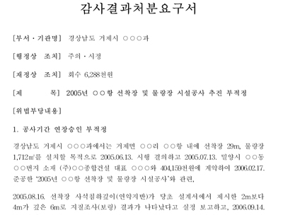 4ÀÏ ÇàÀںδ °ÅÁ¦½Ã°¡ Áö³ 2005³â °ÅÁ¦¸é 00Ç× ¼±ÂøÀå ¹× ¹°·®Àå ½Ã¼³°ø»ç¸¦ ¹úÀÌ¸é¼ °ø»ç±â°£À» ¿¬Àå½ÂÀÎÇÑ °ÍÀº ºÎÀûÁ¤ÇßÀ¸¸ç ¼³°èº¯°æ½Ã ÀÌÀ±À²À» ³ô°Ô Çß´Ù¸ç ÁÖÀÇ.½ÃÁ¤¸í·É°ú ÇÔ²² 628¸¸8õ¿øÀ» ȸ¼öÇ϶ó°í óºÐÇß´Ù.