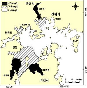 ¸¶»êÁö¹æÇؾç¼ö»êû(ûÀå ÀÓ±¤¼ö)Àº Áö³ 4~6ÀÏ Á¶»ç¸¦ ÅëÇØ °íÇö¸¸ ÇØ¿ªÀÇ ÀúÃþ¿¡¼ ¿ëÁ¸»ê¼Ò ³óµµ°¡ 3 mg/L ÀÌÇÏÀÇ ºó»ê¼Ò ¼ö±«°¡ Çü¼ºµÇ¾î ÀÖ´Ù°í ¹àÇû´Ù.
