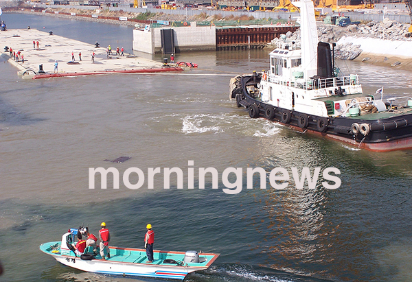 ÃÑ¿¬Àå 8.2§°ÀÇ °Å°¡´ë±³ ±¸°£ Áß 3.7§°ÀÇ ÇØÀúÅͳÎÀ» ¿¬°áÇØÁÖ´Â ±æÀÌ 180m(³ôÀÌ 9.75m, ³ÐÀÌ 26.5m)ÀÇ Ä§¸ÅÅͳΠ±¸Á¶¹° 4°³°¡ °æ³² Å뿵½Ã ±¤µµ¸é ¾ÈÁ¤¸® Á¦ÀÛÀåÀ» ¶°³ª Àα٠Àӽðè·ùÀåÀ¸·Î ¿î¼ÛµÆ´Ù.
