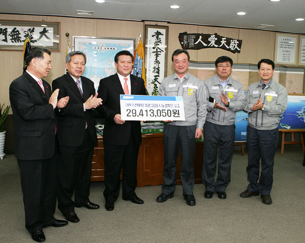 ´ë¿ìÁ¶¼±Çؾç(www.dsme.co.kr․´ëÇ¥ ³²»óÅÂ) Á÷¿øµéÀÌ »ç³» Áö½Ä°æ¿µÈ°µ¿À» ÅëÇØ ¹ÞÀº Æ÷»ó±Ý(K-Point․Knowledge Point) 2941¸¸3050¿øÀ» Áö³ 31ÀÏ ±èÇѰ⠰ÅÁ¦½ÃÀå¿¡°Ô Àü´ÞÇß´Ù.