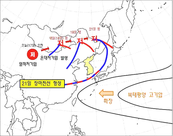 ±â»óûÀº 18ÀÏ ¡°¿ì¸®³ª¶ó´Â ºÏÂÊÀ» Áö³ª´Â ¾àÇÑ ±â¾Ð°ñÀ» ¿µÇâÀ» ¹Þ°í ÀÖ°í À帶Àü¼±Àº ÀϺ»¿µµ ³²ÂÊ ¸Õ¹Ù´Ù¿¡¼ µ¿-¼·Î ±æ°Ô Çü¼ºµÇ¾î ¾àȵǰí ÀÖ´Ù¡± °í ¹àÇû´Ù.