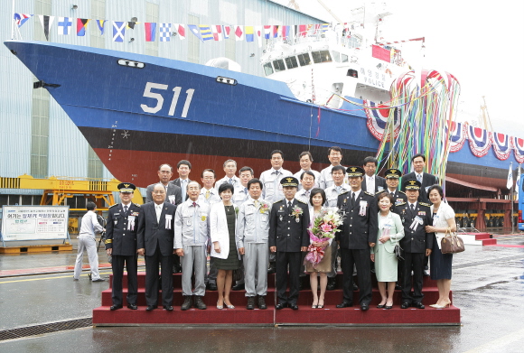´ë¿ìÁ¶¼±Çؾç(´ëÇ¥ ³²»óÅÂ, www.dsme.co.kr)ÀÌ 21ÀÏ ³²»óÅ »çÀå, À̱æ¹ü ÇØ¾ç°æÂûûÀåÀ» ºñ·Ô ³²ÇØÁö¹æÇØ¾ç°æÂûûÀå°ú ¸¶»êÁö¹æÇؾçÇ׸¸Ã»Àå, °ÅÁ¦½ÃÀÇȸÀÇÀå µîÀÌ Âü¼®ÇÑ °¡¿îµ¥ 500t±Þ ÃֽŰæºñÇÔ ¡®Å±Ø11È£¡¯ Áø¼ö½ÄÀ» °¡Á³´Ù.