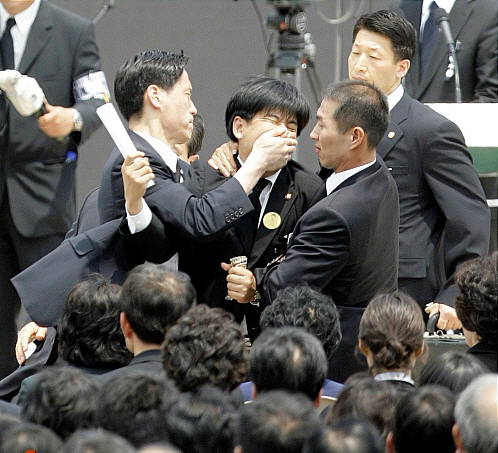 ¹é ÀÇ¿øÀº Áö³ÇØ 5¿ù29ÀÏ ³ë Àü ´ëÅë·É ¿µ°á½Ä¿¡¼ À̸í¹Ú ´ëÅë·É¿¡°Ô ¡°»çÁËÇ϶ó"°í ¿ÜÄ¡¸ç µ¹ÁøÇÏ´Ù °æÈ£¿øÀÇ Á¦Áö¸¦ ¹Þ´Â µî Àå·Ê½ÄÀ» ¹æÇØÇÑ ÇøÀÇ·Î ¹ú±Ý 300¸¸¿ø¿¡ ¾à½Ä±â¼ÒµÆ´Ù.
