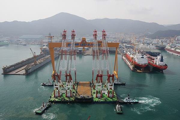 »ï¼ºÁß°ø¾÷ °ÅÁ¦Á¶¼±¼Òµµ º¸À¯ÇÑ ÇØ»ó Å©·¹ÀÎ ÇÑ ´ë¸¦ ´ë±â½ÃÄ×´Ù. ÀÌ Å©·¹ÀÎÀº ±æÀÌ 100m, Æø 45m, ¹«°Ô 1¸¸1800tÀ¸·Î ÃÖ´ë 3000t±îÁö µé¾î ¿Ã¸± ¼ö ÀÖ´Ù.