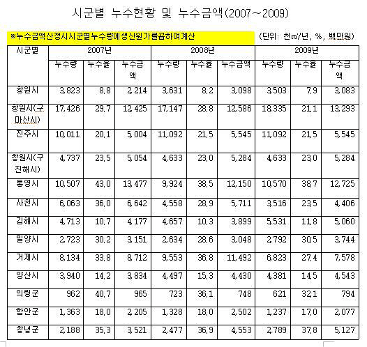 ±èÇØ¿¬ µµÀÇ¿øÀÌ ¡®07³âºÎÅÍ ¡¯09³â±îÁö ´©¼öÀ² ÇöȲÀ» Á¶»çÇÑ ¹Ù¿¡ µû¸£¸é ÇöÀç ´©¼öÀ²ÀÌ Àüü °ø±Þ·® ´ëºñ 30% ÀÌ»óÀ» ±â·ÏÇϰí ÀÖ´Â ½Ã,±ºÀº 9°÷À¸·Î Áö³Çغ¸´Ù 1°÷ÀÌ ´Ã¾úÀ¸¸ç, 20°³(â¿ø½Ã ÅëÇÕÀü) ½Ã,±ºº° ¡®09³â ´©¼öÀ²Àº °í¼º±ºÀÌ 40.8%·Î °¡Àå ³ô¾Ò°í ³²ÇرºÀÌ 40.8%, â³ç±ºÀÌ 37.4%·Î ³ªÅ¸³µ´Ù.