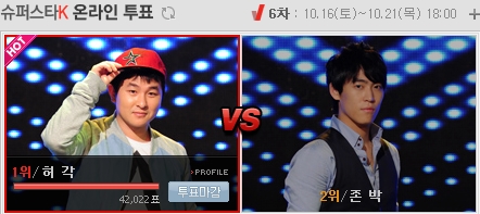 Mnet(¿¥³Ý) '½´ÆÛ½ºÅ¸K2¡¯ TOP2 Çã°¢ÀÌ ¿Â¶óÀÎÅõÇ¥¿¡¼ Á¸¹ÚÀ» ¸¸¿© Ç¥ Â÷ÀÌ·Î µûµ¹¸®¸ç ¿ì½Â °¡´É¼ºÀ» ³ô¿´´Ù.