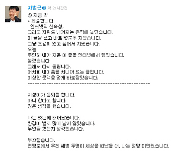 ±×·¯³ª ¿ì¿¬È÷ Áö¿öÁ³´ø ÀÚ½ÅÀÇ ±ÛÀ» ÀÎÅͳݿ¡¼ Àоú´Ù. Â÷°¨µ¶Àº ¡°¾îÂ÷ÇÇ ³»À̸§À» Ä¡´Ï±î ¶ß´Â ±ÛÀÌ´Ù. ÀÌ»óÇÑ ¹®¸ÆÀ» ¸î °³ ¹Ù·ÎÀâ¾Ò´Ù¸ç ´Ù½Ã ¿Ã·È´Ù.