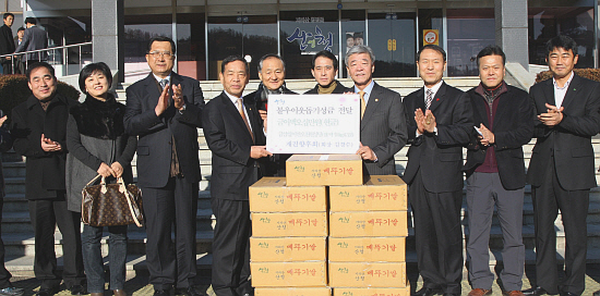 |  | | | include "$_SERVER[DOCUMENT_ROOT]/banner_include.php3"; ?> Àç ÁøÁÖ »êû±ºÇâ¿ìȸ(ȸÀå ±è°æ¼ö)´Â »êû±º °ü³» ºÒ¿ìÀÌ¿ôÀ» À§ÇØ È¸¿øµéÀÇ ¼º±ÝÀ¸·Î ¸ð±ÝÇÑ Çö±Ý 250¸¸¿ø°ú ½Ò20§¸ 13»óÀÚ¸¦ 27ÀÏ »êû±º¿¡ Àü´ÞÇß´Ù.