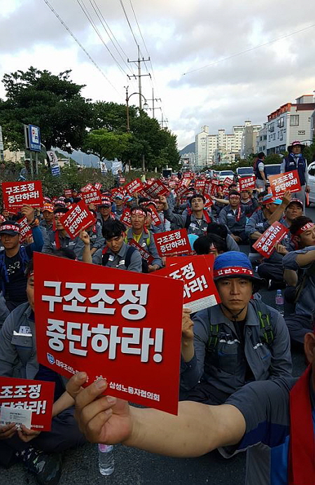Á¤ºÎÀÇ Á¶¼±¾÷ ±¸Á¶Á¶Á¤¿¡ ¹Ý¹ßÇÏ´Â »ï¼ºÁß°ø¾÷ ³ëµ¿ÀÚÇùÀÇȸ¿Í ´ë¿ìÁ¶¼±³ëµ¿Á¶ÇÕÀÌ 15ÀÏ °ÅÁ¦ µµ½É¿¡¼ °øµ¿Áýȸ¸¦ °³ÃÖÇß´Ù.