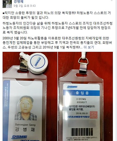 ° ÀÇÀåÀº ÀÛÁö¸¸ ¼ÒÁßÇÑ ÅõÀïÀÇ °á°ú, ÇÏû³ëµ¿ÀÚÀÇ Àΰ£´Ù¿î »îÀ» À§ÇØ ±â³ª±ä ÅõÀïÀ¸·Î 7³â6°³¿ù¸¸¿¡ ´ç´çÇÏ°Ô ÇöÀåÀ¸·Î º¹Á÷Çß´Ù¸ç ÇÏû³ëµ¿ÀÚ ½º½º·Î °Å´ëÇÑ Èñ¸ÁÀÇ ºÒ¾¾°¡ µÉ °ÍÀ̶ó°í ÀüÇß´Ù.