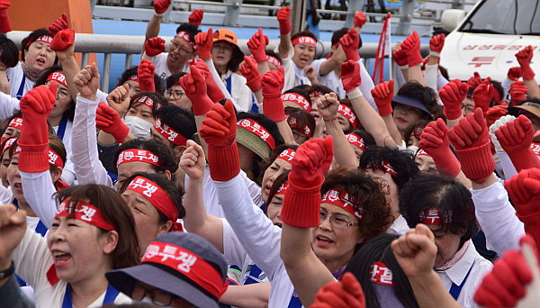 ÃÖÀúÀÓ±ÝÀλó°ú Åä¿äÀÏ À¯±Þ¿ø»óȸº¹ µîÀ» ¿ä±¸Çϰí ÀÖ´Â ³ëÁ¶´Â Áö³ 11ÀÏ 6½Ã°£ ÆÄ¾÷À» Çѵ¥ À̾î 12Àϰú 13ÀÏ »çÃø°ú ´Üü±³¼·À» ¹ú¿´Áö¸¸ ±âÁ¸ ÀÔÀ常 °í¼öÇÏ´Â »çÃøÀÌ Å¸°á¾ÈÀº Á¦½ÃÇÏÁö ¾Ê¾Ò´Ù°í ÁÖÀåÇß´Ù.